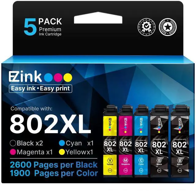 Install: 802 ink cartridges are equipped with the latest smart chip to ensure full compatibility and a seamless printing experience. Just simply insert the cartridge and start printing smoothly to use with epson ink 802 ^^ Premium E-Z Ink 802xl