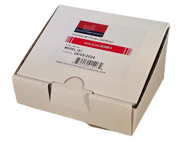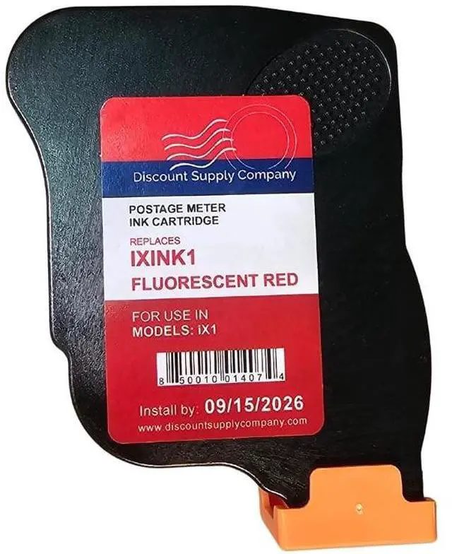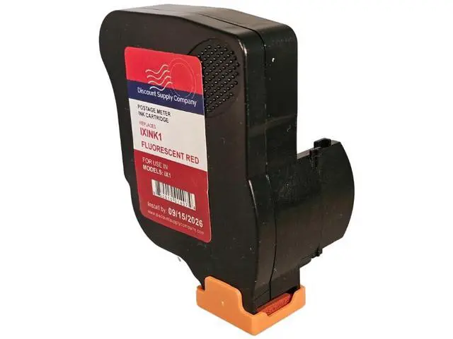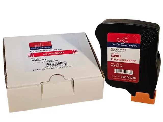 Compatible cartridge for the iX-1 Mailing Machine. Compares to IXINK1. These cartridges are all individually machine tested at our factory as a quality control measure, and sealed in an anti-static bag. ^^ 90 Day guarantee from Discount Supply Company, an American, USA based small business. ^^ USPS certified fluorescent ink specifically formulated for the iX1 mailing machine. ^^ Yields up to 2, 000 postal imprints, which is the same as the OEM, but a much better value. ^^ 1 cartridge per box