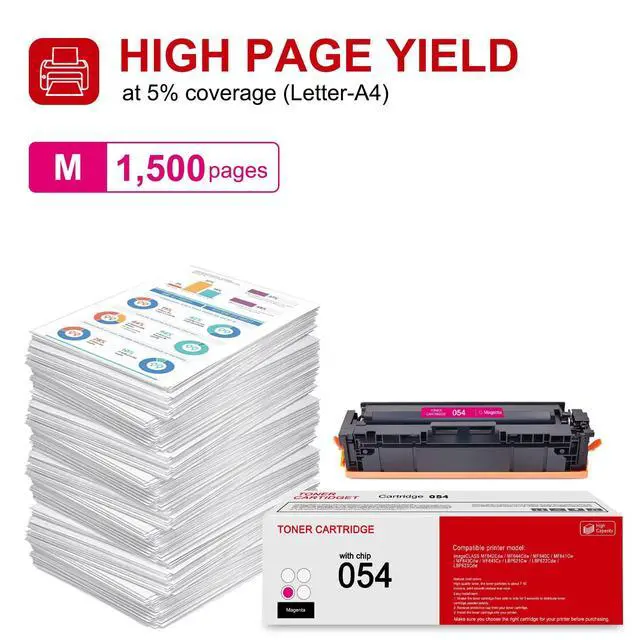 ^^ Page Yield: 1, 500 pages per CRG-054 M magenta toner cartridge at 5% coverage.
