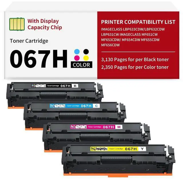 Canon imageCLASS printers: Compatible with Canon models including MF656Cdw, MF654Cdw, MF653Cdw, MF652Cdw, MF652Cw, MF651Cw, MF650C, MF657Cdw, MF655Cdw, LBP632Cdw, LBP633Cdw, LBP631Cw, and LBP630C. Designed for easy installation and smooth, uninterrupted printing from start to finish. ^^ High Page Yield 067h Toner Cartridge Set for