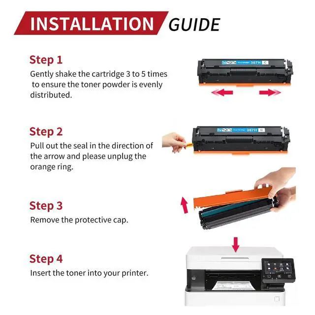 Toner Cartridge Set Performance: Built with an upgraded capacity chip, this 067h toner cartridge set provides real-time toner level tracking to prevent unexpected printing stoppages. The intelligent system ensures smooth recognition and consistent printingideal for home offices, schools, and small businesses needing reliable 067 toner performance. ^^ Wide Compatibility with