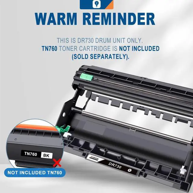 Package includes: 1 Pack of compatible drum unit replacements for DR730 DR-730. NOT include toner cartridges. Please use it with Ankink TN760/TN730 toner cartridge ^^