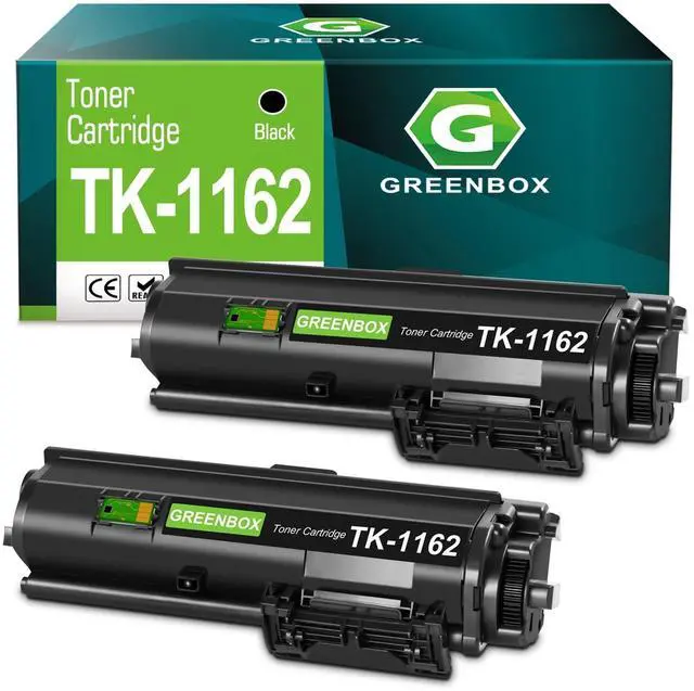 Package Contents: 2 pack black TK-1162 Tk1162 toner ^^ GREENBOX Compatiable for Kyocera TK1162 TK-1162 toner cartridge provides clear text and graphics, print the color effect you want on the paper