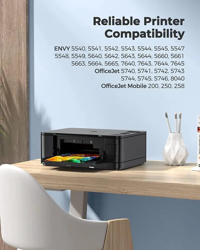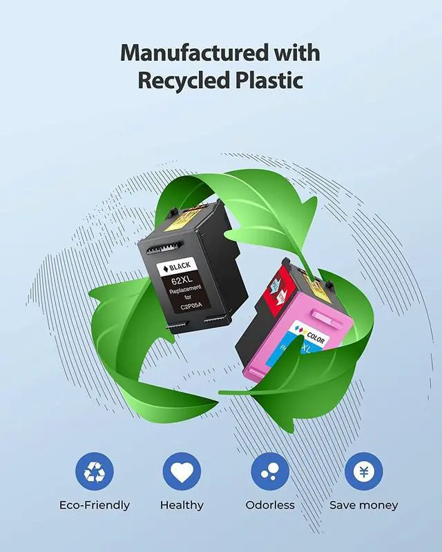 ENVY 5540, 5541, 5542, 5543, 5544, 5545, 5547, 5548, 5549, 5640, 5642, 5643, 5644, 5660, 5661, 5663, 5664, 5665, 7640, 7643, 7644, 7645; OfficeJet 5740, 5741, 5742, 5743, 5744, 5745, 5746, 8040; OfficeJet Mobile 200, 250, 258 ^^ 650 pages per 62XL cartridge in black and 450 pages in color. ^^ Suitable for Home Office School Bank ^^ Manufactured with recycled plastic ^^
