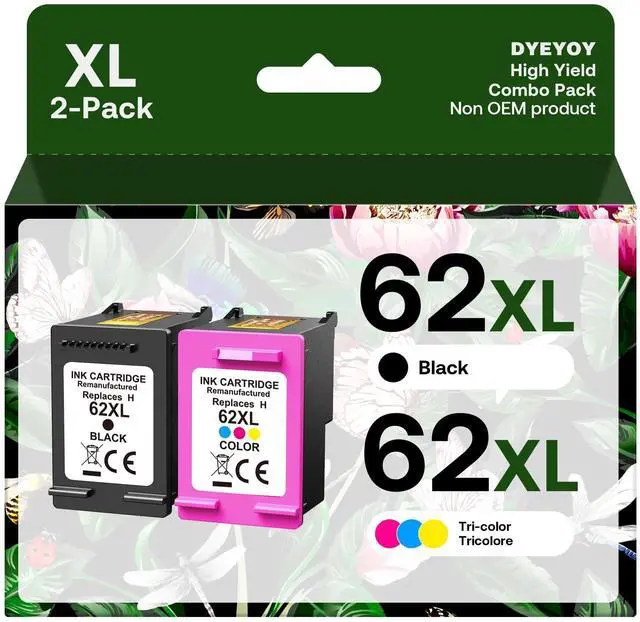 Package Includes: 1 x Black 62XL Ink Cartridges, 1 x Tri-color 62XL Ink Cartridges, 1 x User