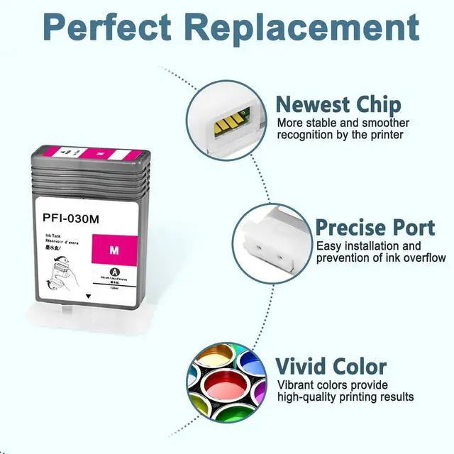 Superior Quality: This high-yield PFI030 ink cartridge uses the latest chip technology and high-quality pigment ink, with an anti clogging nozzle design and easy installation. Provide clear text and graphics ^^