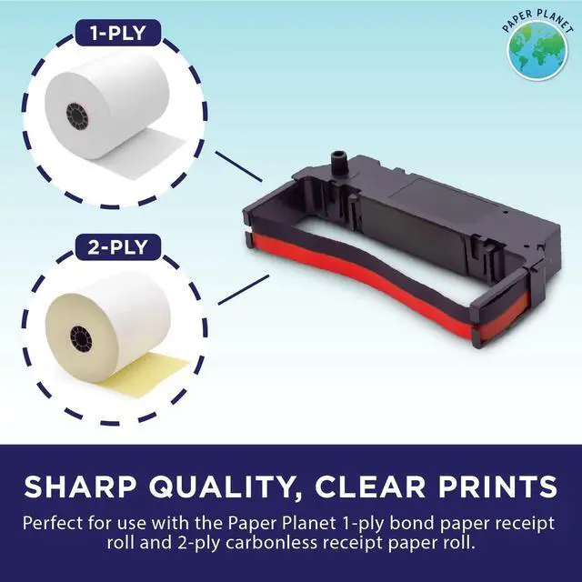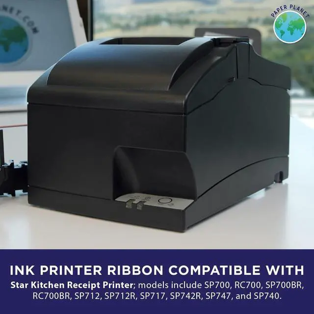 HIGH QUALITY Ink ribbon replacement for commercial retail and restaurant kitchen use by Paper Planet. This ink ribbon is designed for easy replacement and use with select Star receipt paper printer models including the Clover Kitchen Printer. Not for use with cartridge ink printer models. ^^ WORKS AND FITS PERFECTLY WITH Star SP700 Series receipt printer models including: SP700, RC700, SP700BR, RC700BR, SP712, SP712R, SP717, SP742R, SP747, and SP740. Please be sure to check the model number of your Star receipt printer in order to guarantee fit. ^^ A MUST HAVE FOR Any business, no matter if you run a hotel, a restaurant, a retail store, or a kitchen. No matter what your business is, if you need a receipt, the Clover Kitchen star ribbon replacement by Paper Planet will help to get the job done. ^^ LONGER LASTING INK RIBBON for use with Star SP700 series printer models. Unlike other replacement ink ribbons for the Clover Kitchen printer, the Paper Planet replacement ribbon is design to last longer and provide more high quality prints, so you don't have to worry. ^^ PERFECT FOR USE WITH The Paper Planet 1-ply bond paper receipt roll and 2-ply carbonless receipt paper roll. Whether you only need one copy or two, our replacement Star printer ribbon will give you high quality, clear prints. Using black and red ink, the ribbon can print on dual-ply receipt paper, perfect for kitchen use or for copies.