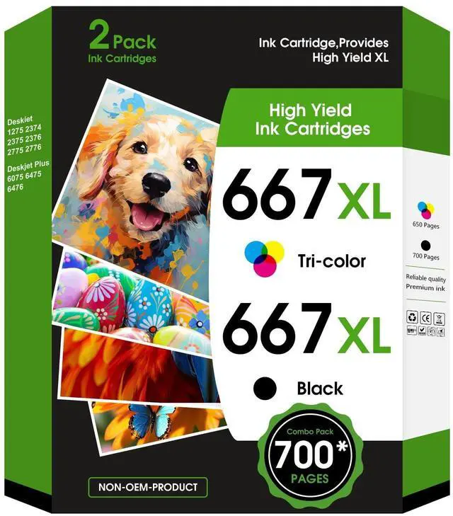 Package Contents: 2 Value Pack 667XL Ink Cartridges (1Black/1Tri-color) ^^ Compatible for HP 667XL Ink Cartridge Combo