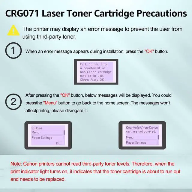 Reliable Performance: Each C071 CRG071 Toner Cartridge undergoes a strict quality testing procedure to ensure compatibility with your printer and quality printout. Easy to install and resists fading, smudging, and blurring.