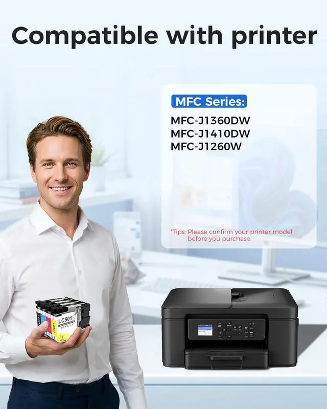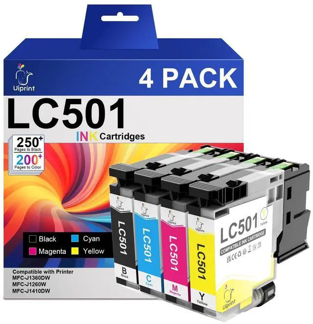 Never Worry About Compatibility: Experience hassle-free printing with Uiprint LC501 Ink Cartridges, designed for Brother printers MFC-J1360DW, MFC-J1410DW, and MFC-J1260W ^^