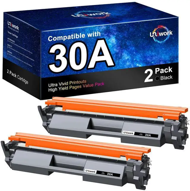 Uniwork 2 Pack 30A 30X CF230A CF230X Black Toner Cartridge Replacement for HP 30A black toner cartridge (with Updated Chip) ^^ Uniwork Replacement for HP 30A Black Toner Cartridge Compatible with HP LaserJet Pro M203dw M203dn M203d MFP M227fdw M227fdn M227sdn M227d M227 Printer.