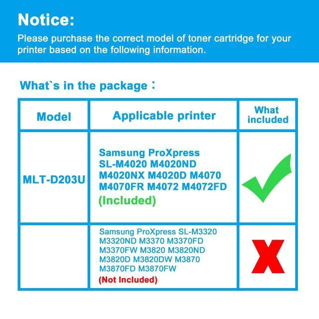 Purchase Notes: NOT Compatible with Samsung ProXpress SL-M3320 M3320ND M3370 M3370FD M3370FW M3820 M3820ND M3820D M3820DW M3870 M3870FD M3870FW Printer.