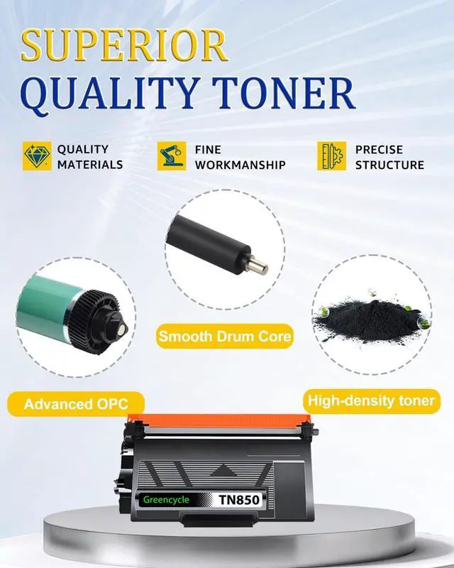 High Page Yield: 8, 000 pages per TN-850 Black Toner Cartridge (Based on 5% coverage of Letter Size Paper) ^^ Greencycle toner tn-850/tn-820 cartridges are made of quality materials: refined toner powder, smart chipsmooth OPC & roller and industrial grade packaging. Make your presentations and printouts stand out with GREENCYCLE toner cartridge that produces clear, crisp, bold, and eye-catching text and graphics.