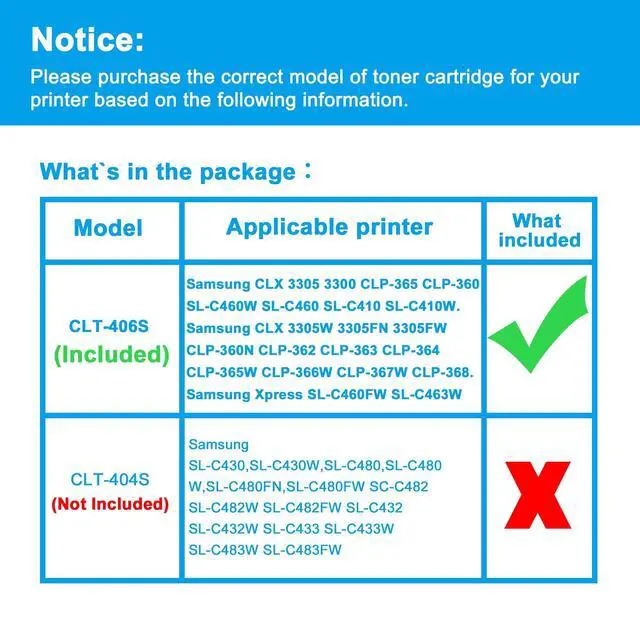 Compatible Printers: Replacement for Samsung CLX-3300 CLX-3302 CLX-3303 CLX-3303FW CLX-3304 CLX-3305 CLX-3305W CLX-3305FW CLX-3305FN CLX-3307F CLP-360 CLP-362 CLP-363 CLP-364 CLP-365 CLP-365W CLP-367W CLP-368. for Samsung Xpress C410W C460W C460FW ^^