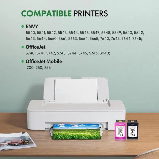 Printer Compatibility: Compatible with HP ENVY 5540 5541 5542 5543 5544 5545 5547 5548 5549 5640 5642 5643 5644 5660 5661 5663 5664 5665 7640 7643 7644 7645; HP OfficeJet 5740 5741 5742 5743 5744 5745 5746 8040; HP OfficeJet Mobile 200 250 258 ^^