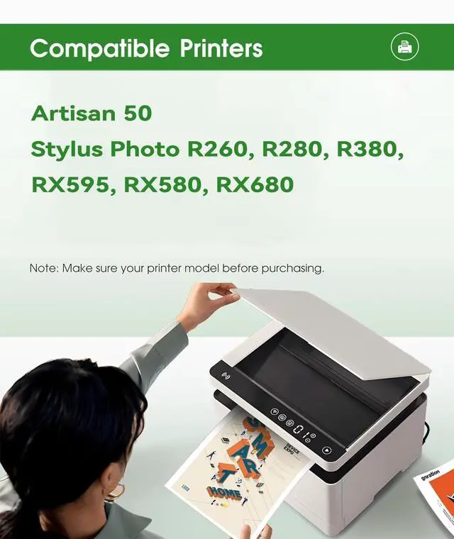 • Wide Compatibility, Seamless Integration:Fully compatible with Artisan 50, Stylus Photo R260, R280, R380, RX595, RX580, RX680 inkjet printer.Easy to install, plug-and-play design requires no technical adjustments.