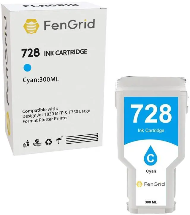 FenGrid 728 Ink Cyan Works with Printer Models HP 728 Ink Cartridge Designjet T730 T830 (Cyan)