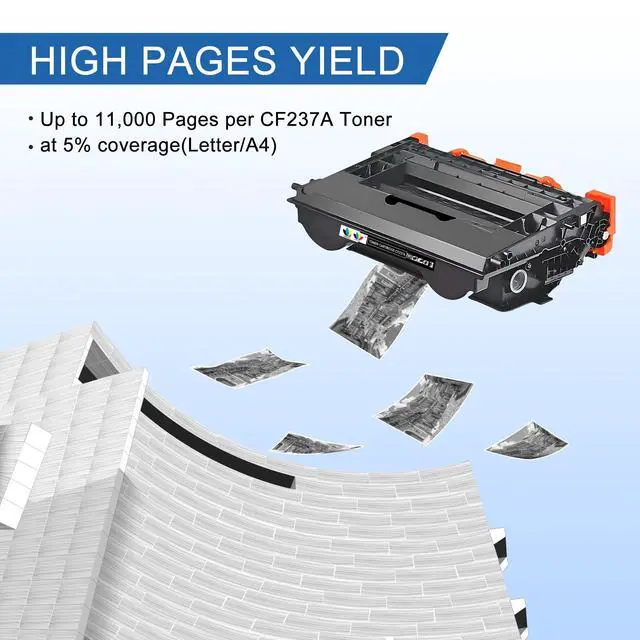 ^^ High Page Yield: 11, 000 pages per 37A black toner cartridge at 5% coverage (Letter/A4).