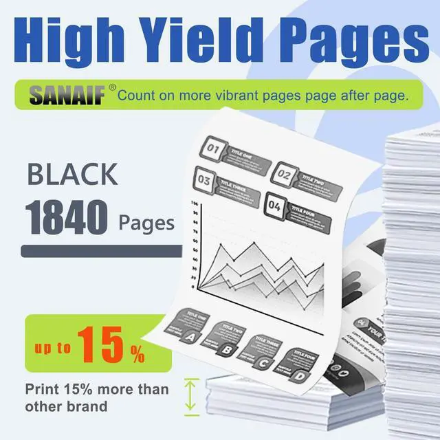 Longer continuous printing capacity: Delivering up to 1, 840+ pages per black cartridge (based on 5% coverage of A4 paper) ^^