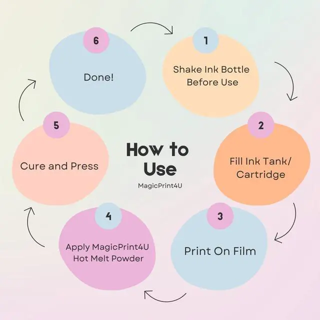 • DESIGNED FOR DEMANDING WORKFLOWS Trusted by small businesses, creators, and custom print shops, MagicPrint4U ink supports production environments that demand reliability, repeatability, and vibrant output.