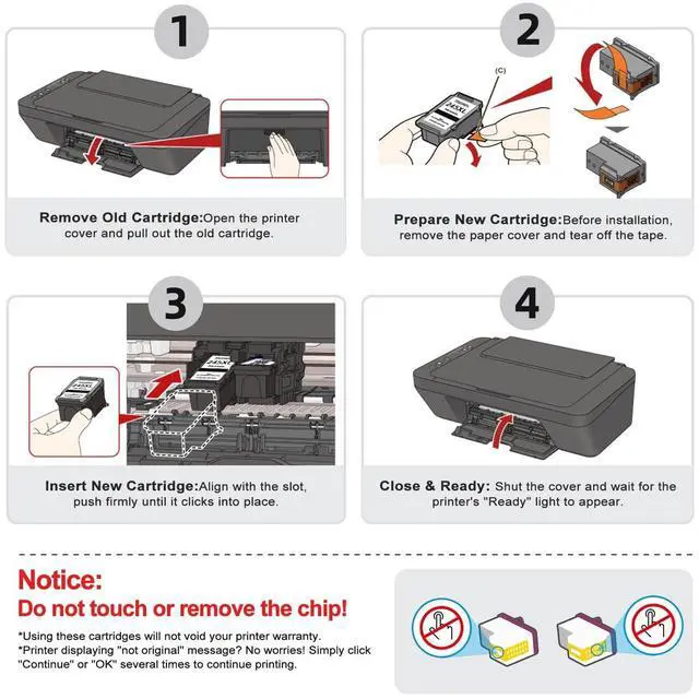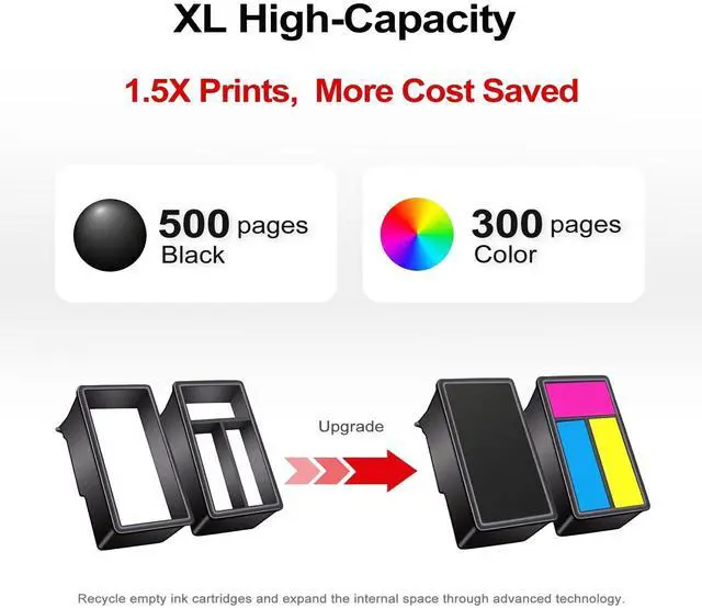 High Page Yield: 300 Pages per color ink cartridge ^^ Inject 1.5 times more ink than the original cartridge ^^