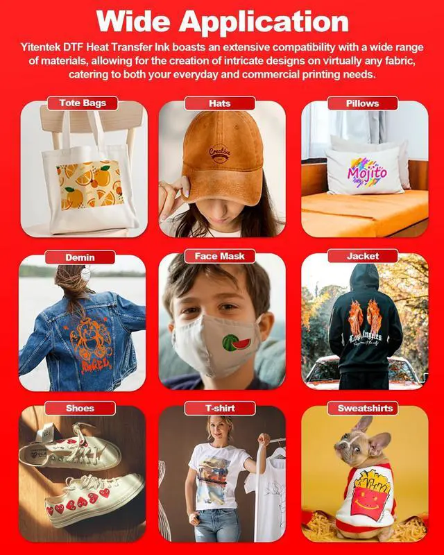 Whether youre customizing unique t-shirts for holidays like Christmas, Thanksgiving, Valentine's Day, Halloween, or New Year, our ink helps you create stunning designs that are perfect gifts for family and friends. ^^ 100% SATISFACTION We are committed to providing exceptional service and products. Please refer to the instruction manual for detailed guidance on using Yitentek DTF ink.