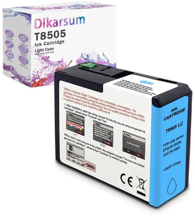Package includes: 1 Pack T8505/T850500 (Light Cyan) Ink Cartridge, 84ML/Pack ^^ This high-yield T8505/T850500 ink cartridge uses the latest chip technology and high-quality ink, with an anti clogging nozzle design and easy installation ^^ T8505 High quality ink has high-quality printing effects, allowing more pages to be printed, reducing the frequency of replacing ink cartridges, and improving work efficiency ^^ We offer replacement/refund for all defects caused by our product. If you receive the item with problems, please contact us