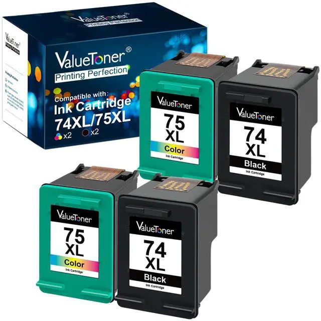Contents: 4 Pack of Remanufactured Ink Cartridge for HP 74XL & 75XL CB336WN CB338WN (2 Black, 2 Tri-Color) ^^