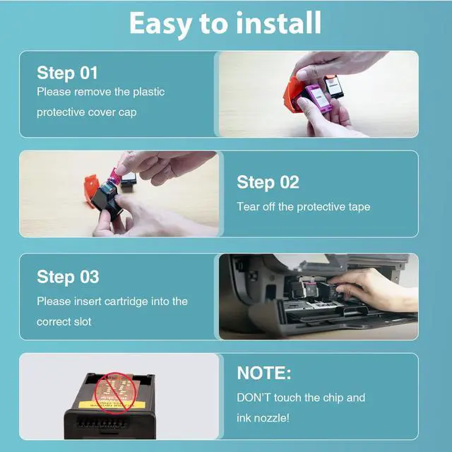 3. Please do not touch and remove the chip or ink nozzles. Turn off the printer and the computer, unplug the power cords, and wait for a few minutes before restarting ^^ 63XL Ink Cartridges Combo