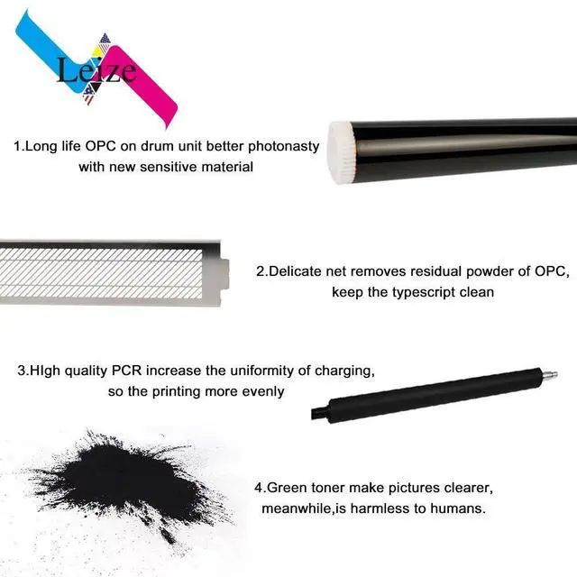 • Quality Assurance - All cartridges are built to be environmental friendly and manufactured in compliance with ISO 9001 and ISO 14001, tested to be qualified for premium performance. Consistently deliver standout results throughout the cartridge life. Ensure your printing is perfect at the first time and every time with Leize printer toner.