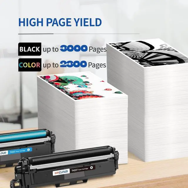 Page Yield: Up to 3000 pages per Black TN227 toner cartridge, Color is 2300 pages per TN227 toner at 5% coverage(Letter/A4).