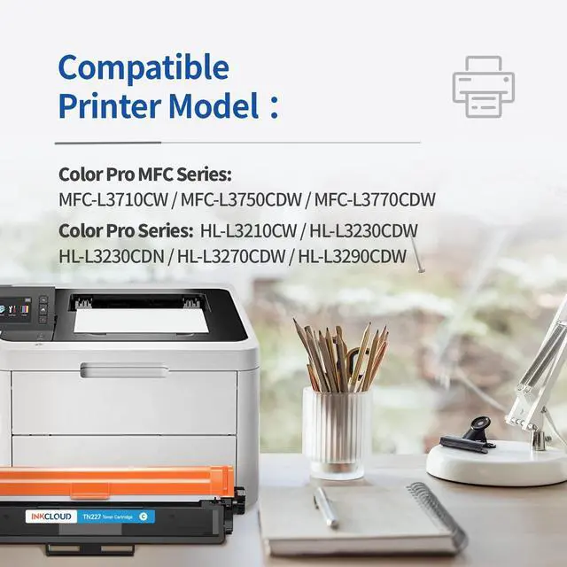 ^^ High Performance: INKCLOUD TN227 Compatible Toner Cartridges for Brother printers deliver Sharp Texts, Crisp Images and Stable Compatibility. Easily complete your projects. ^^ Outstanding After-sale Service. Our TN227 with CHIP high yield toners for Brother are warranted to be free from defects in materials and workmanship during the period of the warranty. If there is any need, please contact us at any time.
