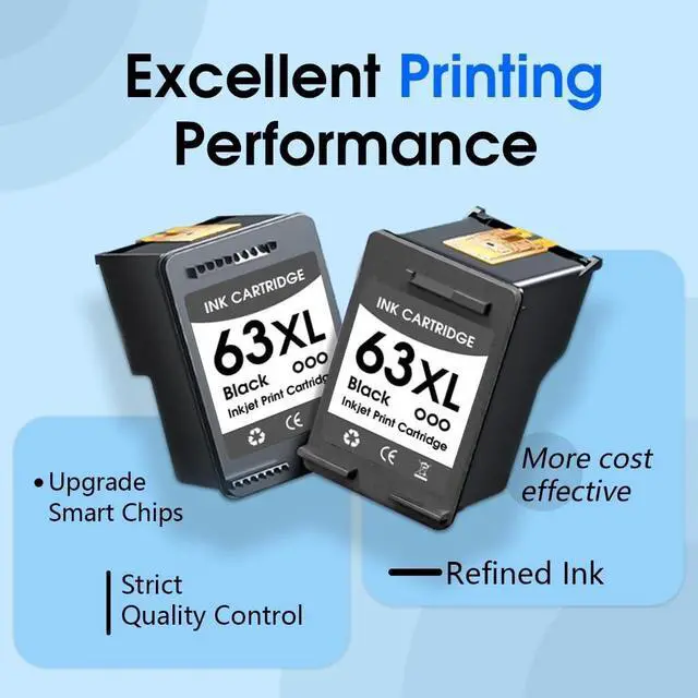Reliable & high-quality ink: Each 63XL ink cartridge was tested with the strict quality procedure to ensure compatibility with your printer and provide your printing with vivid color and sharp text
