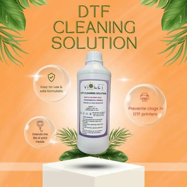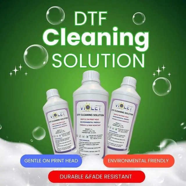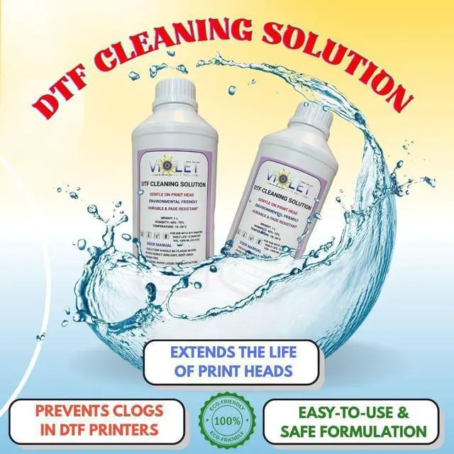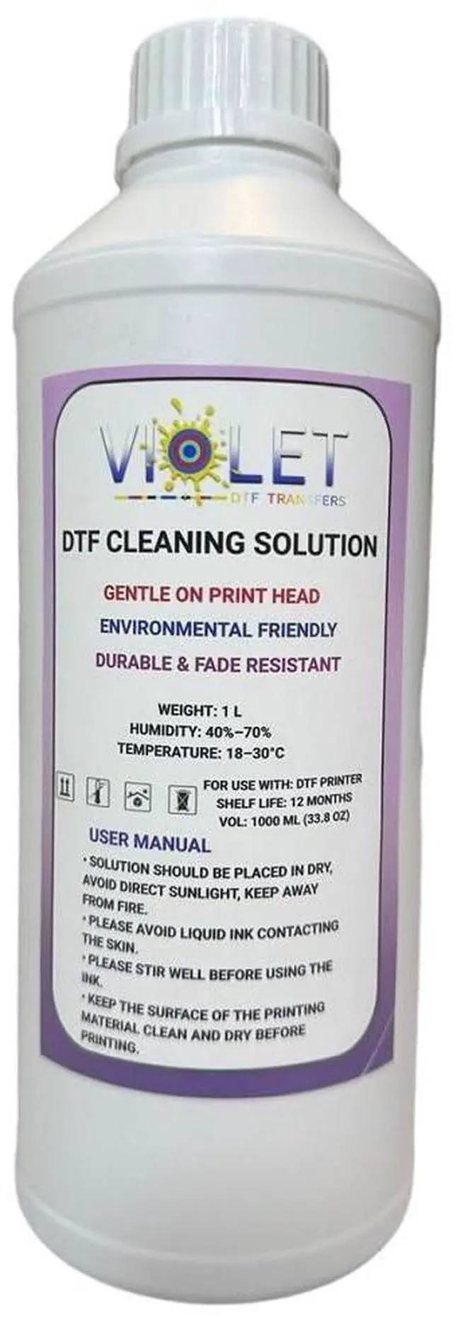 DTF Cleaning Solution for All Inkjet PrintersOur professional-grade DTF cleaning solution is specially formulated for effective maintenance of inkjet & DTF printers. This powerful printhead cleaning solution dissolves dried ink, clears clogged nozzles, & restores ink flow to ensure smooth, high-quality printing. Whether you're using dye, sublimation, pigment, or heat transfer inks, this printer cleaning solution helps fix streaks, color loss, & missing lines. Ideal for regular upkeep, it prevents long-term damage & extends your printers life. A must-have for print shops & home users alike.