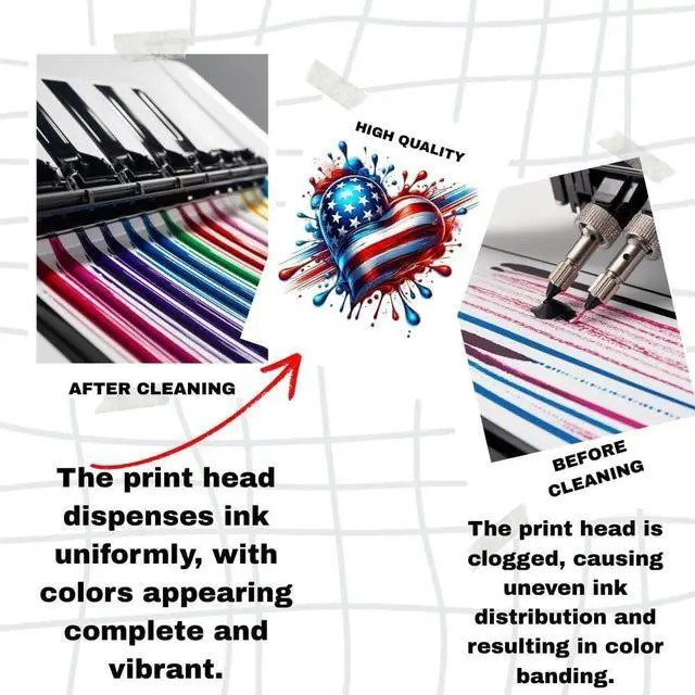 Universal Compatibility with Top Printer BrandsThis printhead cleaner works with most major inkjet printers and is fully compatible with all professional DTF printers, including Ep-son models like I3200-A1, 1600-A1, L1800, TX800, and more. Designed for both standard and modified DTF printers, it effectively cleans even stubborn white ink clogs. Ideal for daily maintenance or deep cleaning. If your printer model isn't listed, feel free to contact us for compatibility support. Advanced Printhead Cleaning TechnologyThis upgraded ep-son cleaning formula contains active enzymes that dissolve both wet & dry ink particles.