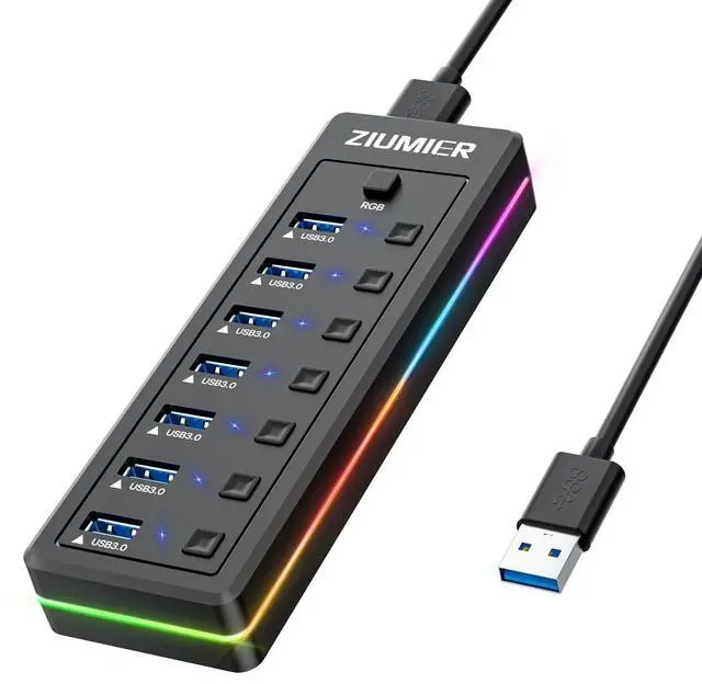 This lets you selectively turn off peripherals to save power, all with the simple press. ^^ [ 3.3 ft Cables] Ziumier 7 ports USB hub comes with a 100cm ( 3.3 ft) USB cable and enough length to let you arrange your cables anywhere. The Usb hub is a good ideal data backup and transmission solution for home and office ^^ [Wide Compatibility] ZIUMIER USB hub is engineered to work effortlessly with Windows (XP to 11), Mac OS, and Linux. It supports all USB peripherals from 1.0 to 3.0 and requires no drivers, offering true plug-and-play convenience and hot-swapping capability.