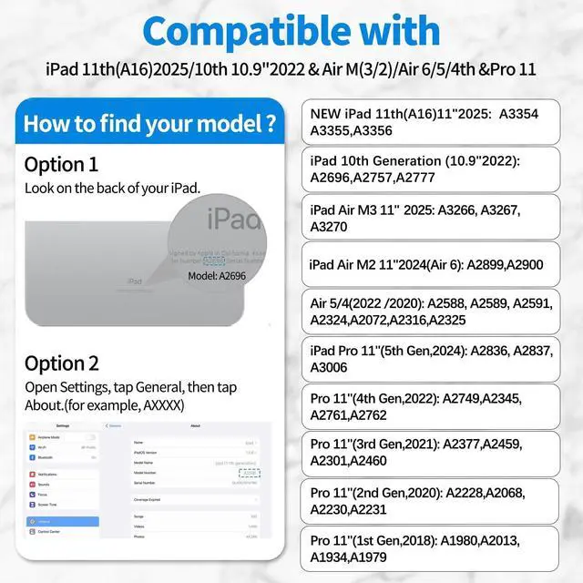 Number: A2588 A2589 A2591 A2324 A2072 A2316 A2325) and iPad Pro 11" 5th/4th/3rd/2nd/1st Gen - 2024/2022/2021/2020/2018 (Model