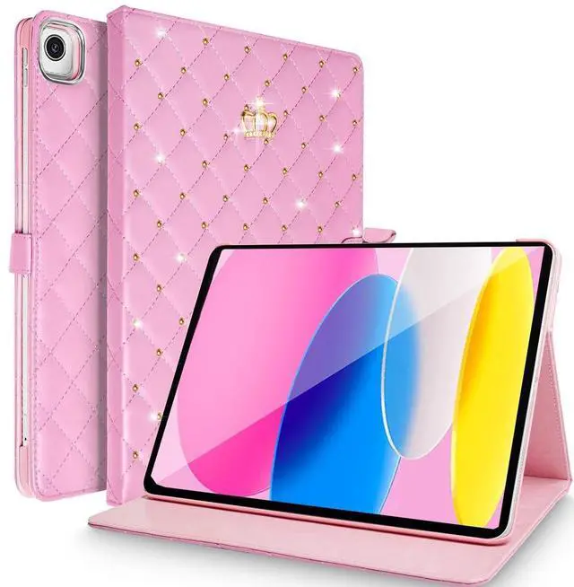 Changjia for iPad Air (3rd Gen) 10.5" 2019/iPad Pro 10.5" 2017 Case, Cute Crown Bling Rhinestone PU Leather Elegant Smart Auto Sleep/Wake Stand Shockproof Protective Case for Apple iPad 10.5 inch, PinkCompatibilityCompatible with for Apple Pad Air 3rd generation 10.5 inch 2019 release (Model