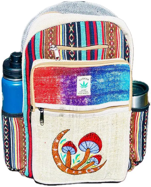 DescriptionHimalayan Craft Beautifully designed Medium Hemp Bag backpack is made from natural hemp fiber and natural heavy-duty cotton that are well known for their strength and durability. Inner lining has soft cotton material to make this bag sturdy and extra durable. This multi-color stylish backpack has pockets of different sizes, useful for all of your different sized goods. It has enough space to carry all your personal belongings including Textbooks, Laptop and other necessities. This backpack gets softer to touch as you use it more, yet it retains its durability. We use pure Hemp and Cotton.