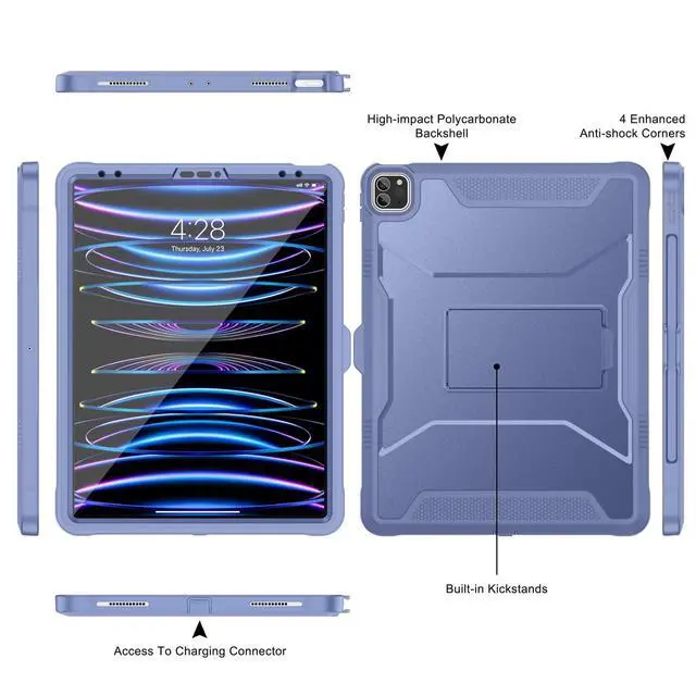 Soke Case for iPad Pro 12.9 Inch 6th/5th/4th Generation(2022/2021/2020 Release), Rugged Shockproof Protective Cover with Built-in Kickstand for Apple iPad Pro 12.9 - Lavender Gray