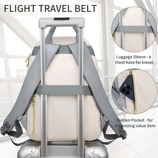 ^^ USB Charging PortSmart backpack with a USB port to charge your device while on the go. Built-in charging cable and mesh pocket for Powerbank. (Please note that the device cannot be automatically supplied with power. The USB charging port is only for easy charging. ) ^^ Safe TravelSecret pocket on the back for organize value items. Luggage sleeve for lightweight traveling. The anti-theft zipper supports self-installation of the lock. The standard size is ariline approved, suitable for underseat.