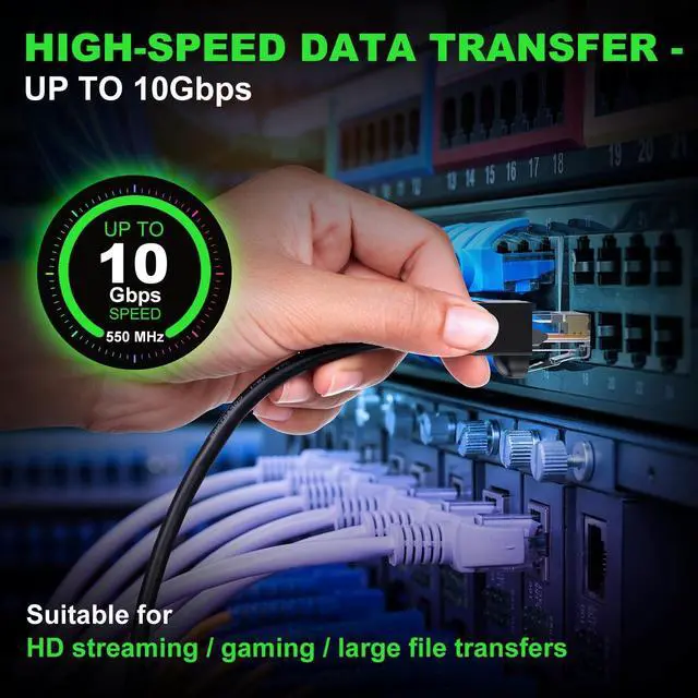 Data Transmission: Cat6 cable supports up to 500 MHz and 10Gbps, perfect for server applications, cloud storage, HD streaming, and gaming. Compatible with Gigabit Ethernet, Fast Ethernet, and 10G Ethernet standards ^^