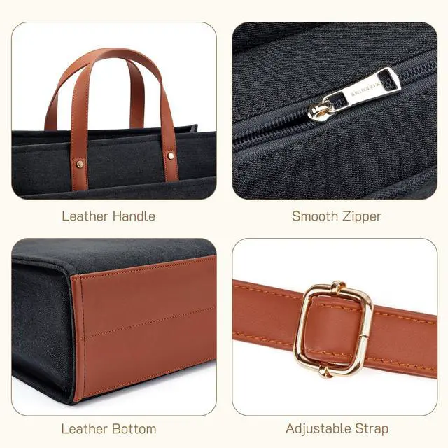 DescriptionMissnine Laptop Bag 15.6 inch Denim Teacher Bag Work Tote Bags for Women Casual Computer Shoulder Bag for Office Business