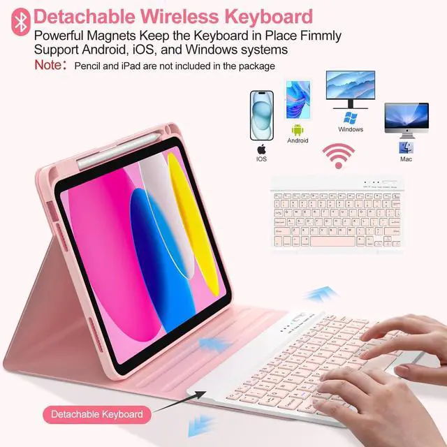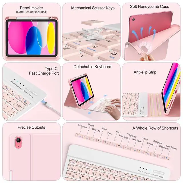 NOTE: Pencil and iPad not included) ^^ Multiple Viewing Angles AdjustThis for 10th gen iPad case with keyboard has 3 anti-slip grooves design to adjust the viewing angle as you like, make your tablet stand steadily. You can adjust the screen angle this way for studying, working, painting or watching videos, do more computerig, suitable for home, office or school use ^^ Magnetically Detachable KeyboardThe (A16) 11th/ 10th gen detachable keyboard is magnetic and it can be strongly attached to the case or detach completely. its easy to attach and remove from the case. When you remove the keyboard, its a protective case and tablet stand, easy to carry it on the go. When you attach the keyboard, let your ipad instantly become a portable laptop, perfect for working, typing, editing or watching videos, greatly improved your iPad productivity ^^ Built-in Pencil HolderThis keyboard case for iPad 11/ 10.9 inch 2025 A16/2022 built-in Right Side Pencil Holder. The pencil holder slot inside is convenient for taking off/pushing back your stylus pen, preventing your stylus pen from being lost. The mechanical scissors keys provide a fluid and comfortable typing experience ^^ Fast and EfficientThe entire row of shortcut keys can quickly adjust volume, brightness, switch input methods, and return to the homepage, perfectly spaced keys provide ultimate typing ease ^^ Precise Cutouts & Full ProtectionCOO for iPad 11/10th Gen Case with Keyboard is made of good quality PU.