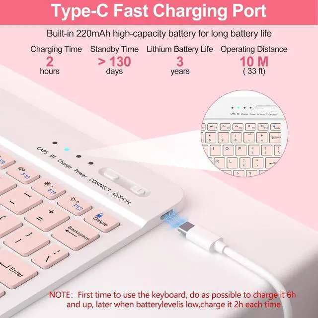 Soft, smooth and it gives a luxurious feeling. The interior case is made of high-quality flexible TPU, honeycomb grid pattern design is better for 100% heat release. Precise cutouts allow full access to all ports, sensors, speakers, microphone and camera, provide full protection to your tablet, and prevent it from drops and scratches ^^ Rechargeable and Long Battery LifeThis rechargeable wireless bluetooth keyboard supports Android, Windows, and iOS systems. Only needs 2 hours of charging time, it can work for 80 hours continuously, and 130 days of long-term standby. Auto sleep/wake initiates when the keyboard case is opened & closed to conserve battery life. * First time to use the keyboard, do as possible to charge it 6h and up, later when batterylevelis low, charge it 2h each time ^^ What You Will Get? 1 x Case for iPad (A16) 11th/10th generation, 1 x wireless keyboard, 1 x transparent keyboard protector, 1x Type-C charging cable (No charger), 1 x user manual. Please note that tablet and pencil are not included. As a reliable brand, we are very concerned about the reputation & quality of our products.
