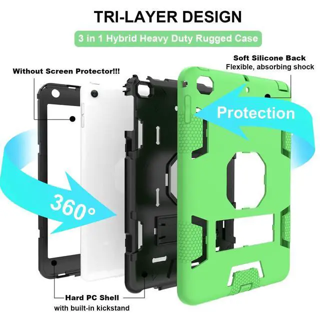 Number: A2133 / A2124 / A2126 / A2125 / A1538 / A1550), Not compatible with iPad Mini 1/ 2/ 3. [Without Screen Protector]. ^^ Kickstand DesignSturdy built-in kickstand, extremely convenient and easy to push out and back in. Allows easy access to your favorite shows, movies, and games while on the go. ^^ Proof CaseThree Layer design combines a premium shockproof silicone outer layer with a hard PC cover; flawless case and withstands accidental drop, bump and shock damage. ^^ Ideal Tablet Accessories Added grip texture on the back and sides for easy carrying and holding. Flexible to use your iPad during work, studying or journey, great ideal for teachers or engineers. ^^ CCMAOProper installation of a product is important to successful use, so please check the user manual to ensure correct installation. Also, our ipad case is available in a variety of colors to suit your personal style.