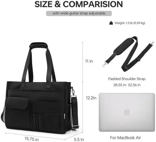 LARGE CAPACITY: Size- 15.75 ''* 5.5 ''* 12.2 ''. This tote bag for women work features a large opening design, the roomy main compartment is big enough to store a 16'' laptop, folders, glasses and more. The large tote bag keep your office supplies neatly organized ^^