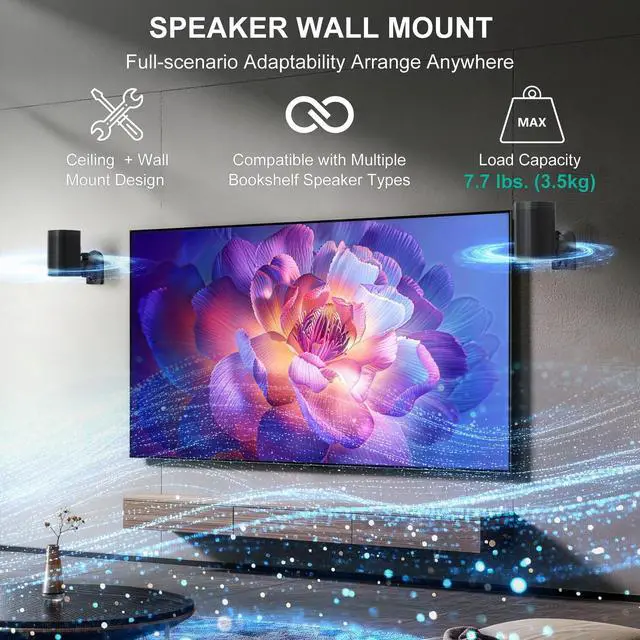 Compatibility: Sound bookshelf satellite speaker mount brackets built to be mounted on stud, concrete or brick/stone walls. Max.