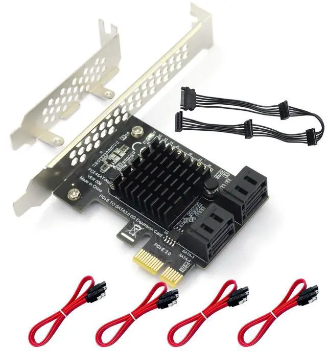^^ Complete Accessory Kit: 4-port PCIe card, 4 SATA cables, power splitter cable, and dual brackets. Ready to use right out of the box for immediate storage expansion. ^^