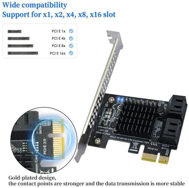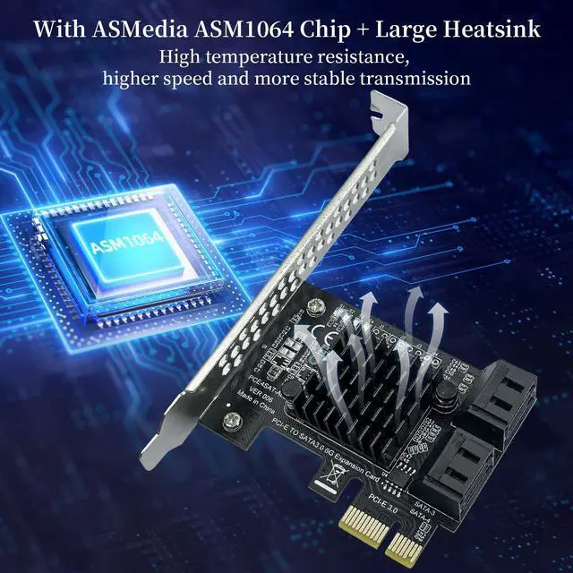 ASM1064 Chip & Stable Performance: Powered by the reliable ASM1064 chipset, this 4-port SATA card ensures stable operation with optimized heat dissipation. High-quality components provide consistent performance for your storage expansion needs. ^^ Wide